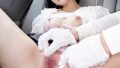 紙パンティーをずらして、股関節の極どい部分を押していく。