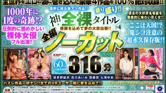 ケイ・エム・プロデュース 【VR】感謝を込めて夢の大放出祭!!世界に誇る激アツ作品!!神全裸タイトル×4盛り盛り!!全編ノーカットBEST 316分